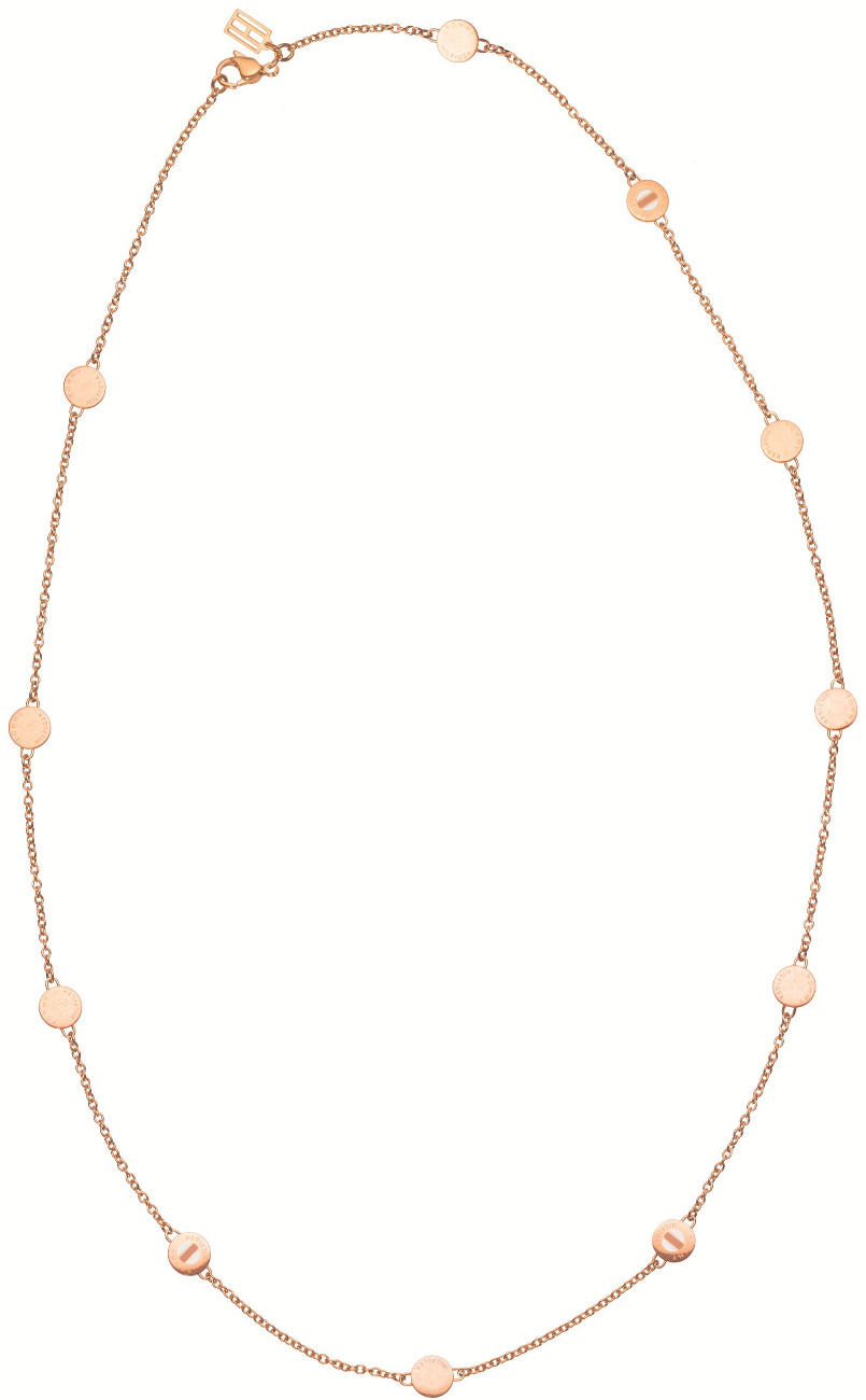 Naisten tyylikäs Tommy Hilfiger 2700497 kaulakoru. Koru on valmistettu ruostumattomasta teräksestä ja on punakullan värinen. Korussa on n. 3cm välein pyöreitä yksityiskohtia, joissa on esim. Tommy Hilfigerin logo. Korun pituus on 50cm. Koru toimitetaan valmistajan alkuperäisessä rasiassa.