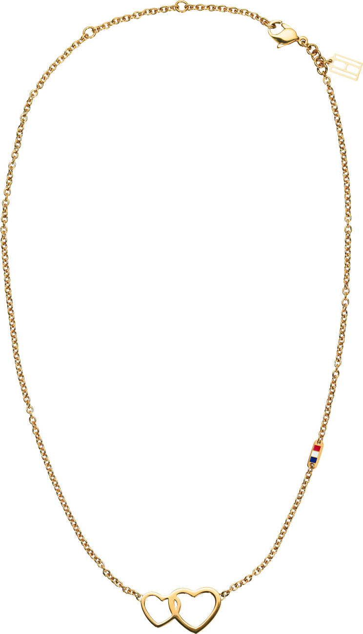 Naisten tyylikäs Tommy Hilfiger 2700528 kaulakoru. Koru on valmistettu ruostumattomasta teräksestä ja on kullan värinen. Sydänten leveys on 2,5cm ja ketjun pituus on 45cm. Koru toimitetaan valmistajan alkuperäisessä rasiassa.