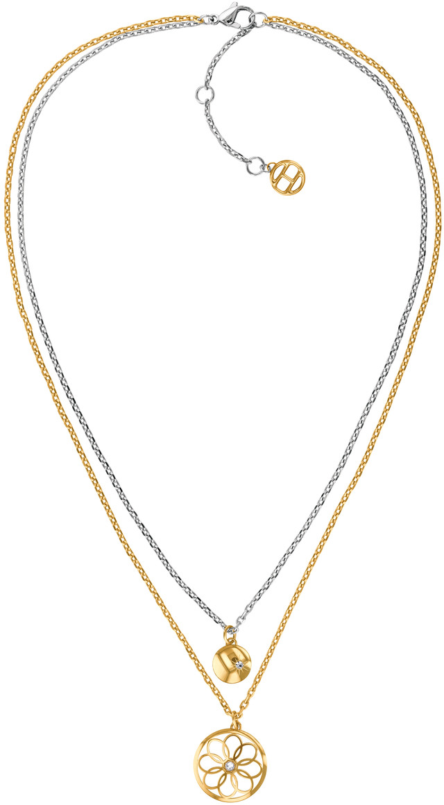 Tommy Hilfiger -kaulakorun 2780068 kepeä kukkakuvio tuo kesän talven keskelle. Koru on valmistettu ruostumattomasta teräksestä ja sen riipuksissa kukoistavat kirkkaat zirkoniakivet. Tämä kullanvärinen malli on säädettävissä 44/46/48 cm pituuteen. Saatavilla myös hopean ja punakullan sävyissä. Toimitus valmistajan alkuperäisessä pakkauksessa.