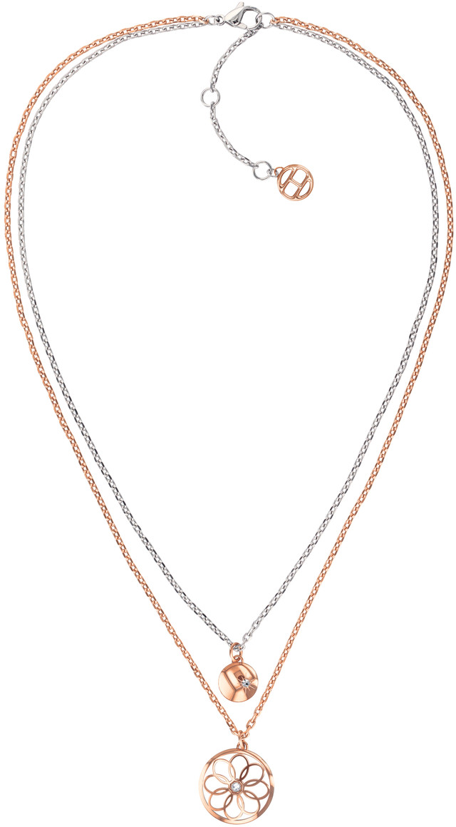 Tommy Hilfiger -kaulakorun 2780069 kepeä kukkakuvio tuo kesän talven keskelle. Koru on valmistettu ruostumattomasta teräksestä ja sen riipuksissa kukoistavat kirkkaat zirkoniakivet. Tämä punakullan värinen malli on säädettävissä 44/46/48 cm pituuteen. Saatavilla myös kullan ja hopean sävyissä. Toimitus valmistajan alkuperäisessä pakkauksessa.