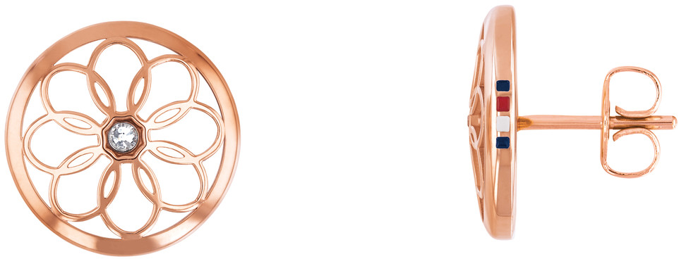 Tommy Hilfiger -korvakorujen 2780082 kepeä kukkakuvio tuo kesän talven keskelle. Korut on valmistettu ruostumattomasta teräksestä ja niiden keskellä kukoistavat kirkkaat zirkoniakivet. Nämä punakullan väriset tappikorvakorut ovat halkaisijaltaan 13 mm. Saatavilla myös kullan ja hopean sävyissä. Toimitus valmistajan alkuperäisessä pakkauksessa.