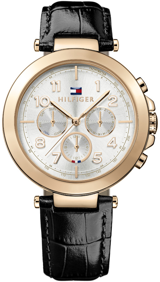 Naisten klassinen Tommy Hilfiger Cary 1781449 rannekello. Runko on valmistettu ruostumattomasta teräksestä ja se on punakullan värinen. Rungon leveys on 40mm ja mustan nahkarannekkeen leveys on 19mm. Kellossa on myös päivyri, multifunction ominaisuus sekä 24h-näyttö. Tommy Hilfiger kelloille myönnetään 2 vuoden takuu ja ne toimitetaan valmistajan alkuperäisessä rasiassa.