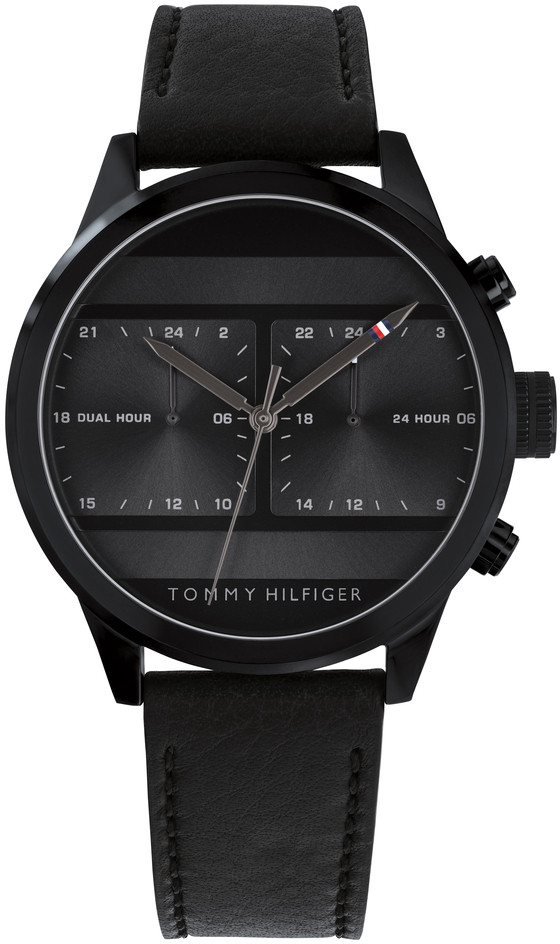 Tommy Hilfiger Icon 1791595 on nimensä mukaisesti uuden ajan tyyli-ikoni. Jännittävä musta kellotaulu tarjoaa mahdollisuuden kahden aikavyöhykkeen yhtäaikaiseen seuraamiseen. Kello on valmistettu ruostumattomasta teräksestä ja aidosta nahasta, sen rungon halkaisija on 44 mm ja rannekkeen leveys 21 mm.
