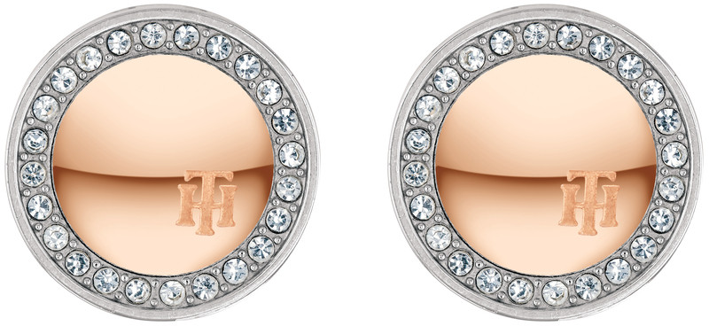 Tommy Hilfiger -korvakorut korvissasi voit olla varma tyylistäsi! Nämä hopean ja punakullan sävyiset 2780185-mallin korut ovat materiaaliltaan ruostumatonta terästä ja niiden ulkoreunaa kiertää joukko kirkkaita zirkonioita. Leveys 12 mm. Toimitus valmistajan alkuperäisessä pakkauksessa.