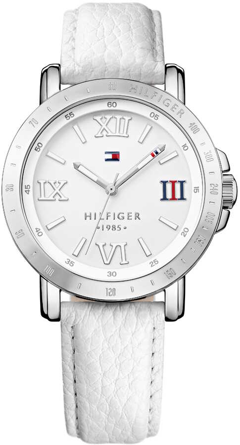 Naisten klassinen Tommy Hilfiger Liv 1781440 rannekello. Runko on valmistettu ruostumattomasta teräksestä ja se on hopean värinen. Rungon leveys on 38mm. Valkoisen nahkarannekkeen leveys on 18mm. Tommy Hilfiger kelloille myönnetään 2 vuoden takuu ja ne toimitetaan valmistajan alkuperäisessä rasiassa.