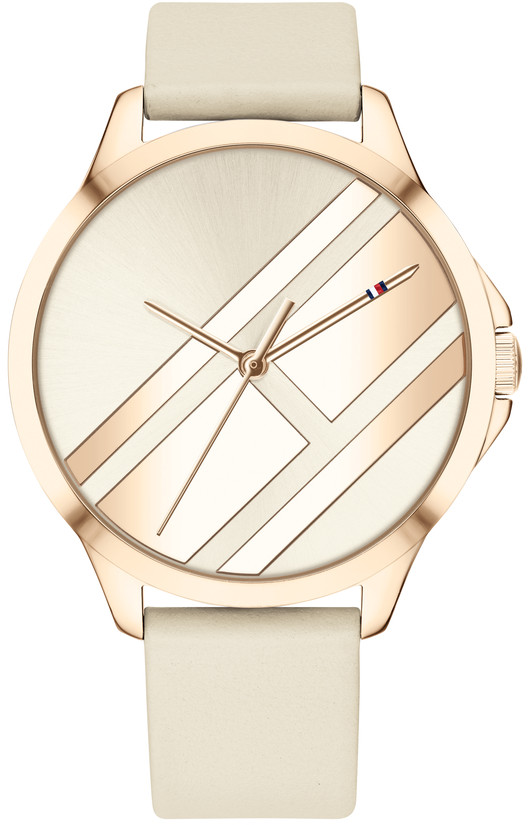 Tommy Hilfiger Peyton 1781966 -rannekello säteilee nuorekasta energiaa. Modernin ulkoasun kellolle antaa sen persoonallinen Tommy Hilfiger -logolla varustettu kellotaulu. Punakullan värinen runko (38 mm) on valmistettu ruostumattomasta teräksestä. Kellossa on vaalean beige, kiinnityskohdasta 17 mm leveä nahkaranneke sekä mineraalilasi ja se on roisketiivis. Saatavilla myös valkoisella rannekkeella.