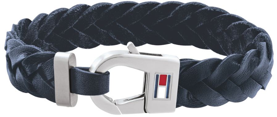 Tummansininen letitetty Tommy Hilfiger 2790158-rannekoru on valmistettu nahasta ja rannekkeen papakaijalukkoa koristaa Hilfigerin logo. Rannekkeen pituus on 19,5 cm ja paksuus on 13 mm. Tommy Hilfiger-korut toimitetaan valmistajan alkuperäisessä pakkauksessa.