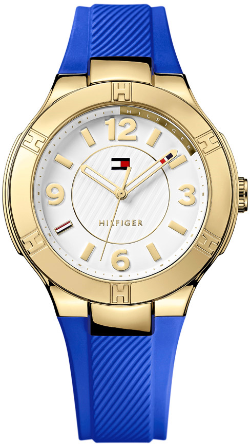 Naisten sporttinen ja tyylikäs Tommy Hilfiger Tory 1781443 rannekello. Runko on valmistettu ruostumattomasta teräksestä ja ranneke on kumia/silikonia. Runko on väriltään kultainen ja ranneke sininen. Rungon leveys on 39mm ja rannekkeen 16mm. Tommy Hilfiger kelloille myönnetään 2 vuoden takuu ja ne toimitetaan valmistajan alkuperäisessä rasiassa.