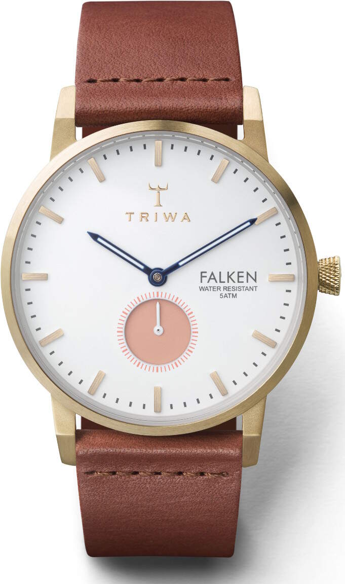 Triwa FAST113 Coral Falken Brown Classic -kellossa kellossa on ruotsalaisen Tärnsjön valmistama tumman ruskea nahkaranneke ja valkoinen kellotaulu. Kellon runko on kullanvärinen. Kellon rungon leveys on 38 mm ja rannekkeen leveys kiinnityskohdasta on 20 mm. Laadukkaille Triwa kelloille myönnetään 2 vuoden takuu ja ne toimitetaan valmistajan alkuperäisessä rasiassa postikuluitta!