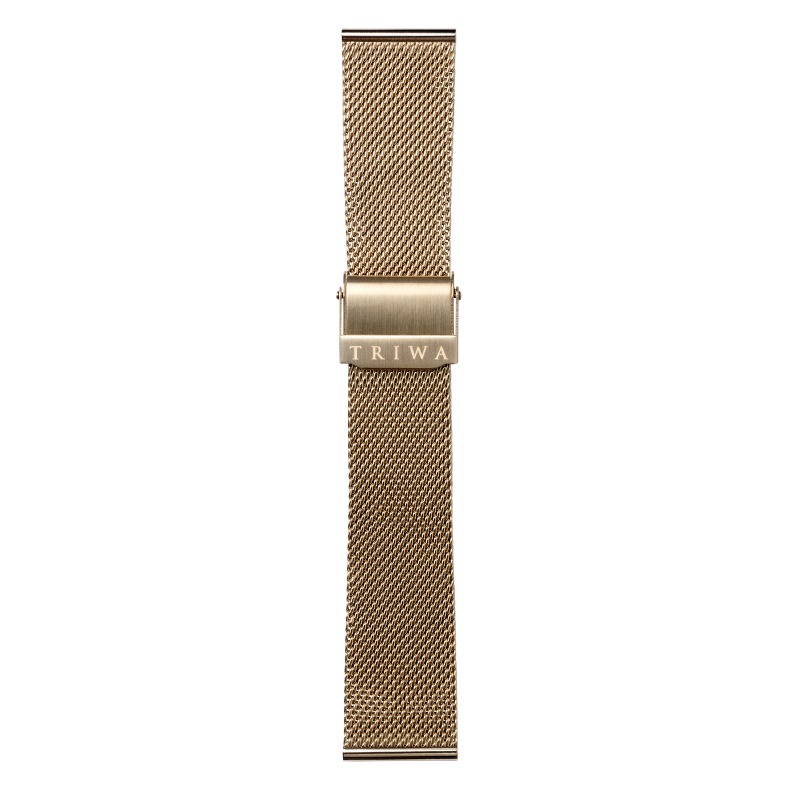 Triwa Mesh ranneke 20mm ME021313 on tyylikäs kullanvärinen ruostumattomasta teräksestä valmistettu ranneke. Kiinnityskohdan leveys 20mm.