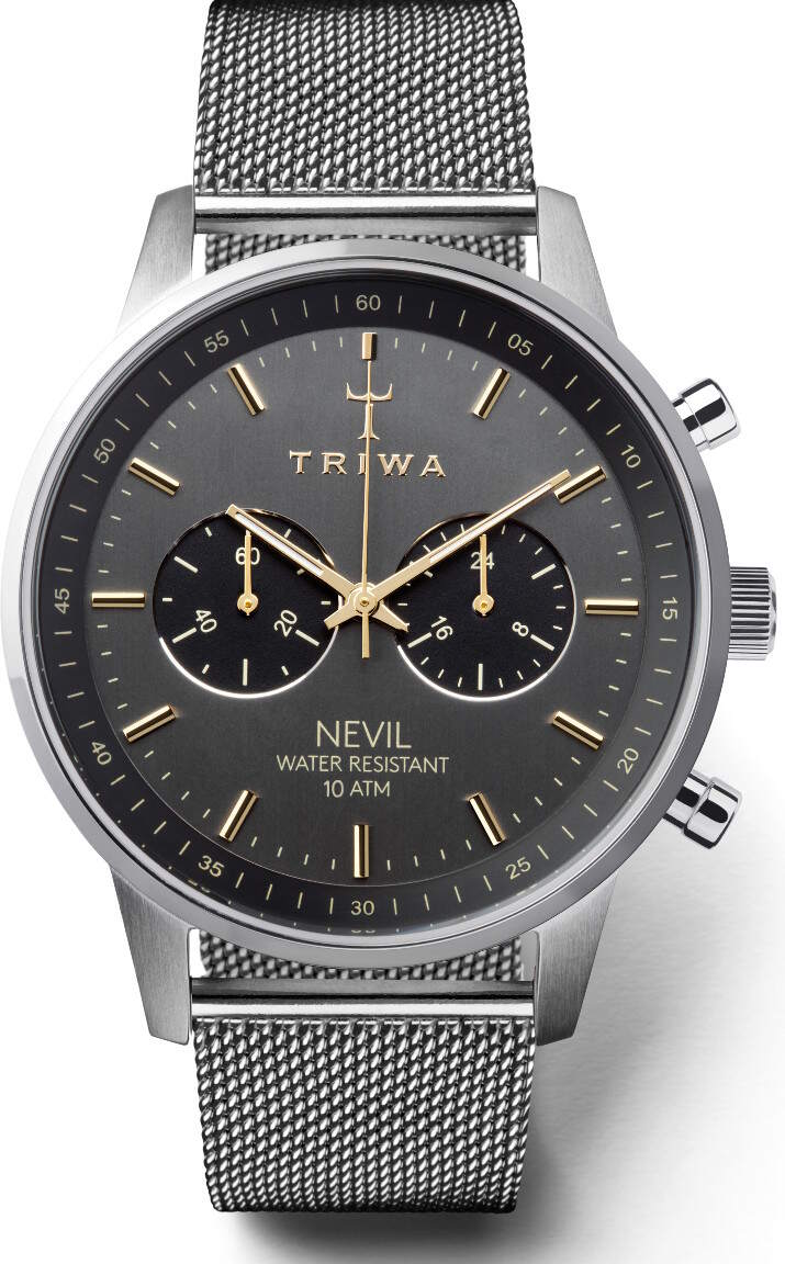 Triwa NEST114 Smoky Nevil Steel Mesh -kellossa on tyylikäs teräksinen mesh-ranneke ja tummna savun harmaa kellotaulu. Kellon rungon leveys on 42 mm ja rannekkeen leveys kiinnityskohdasta on 20 mm. Ominaisuutena ajanotto sekä 24h näyttö. Laadukkaille Triwa kelloille myönnetään 2 vuoden takuu ja ne toimitetaan valmistajan alkuperäisessä rasiassa postikuluitta!