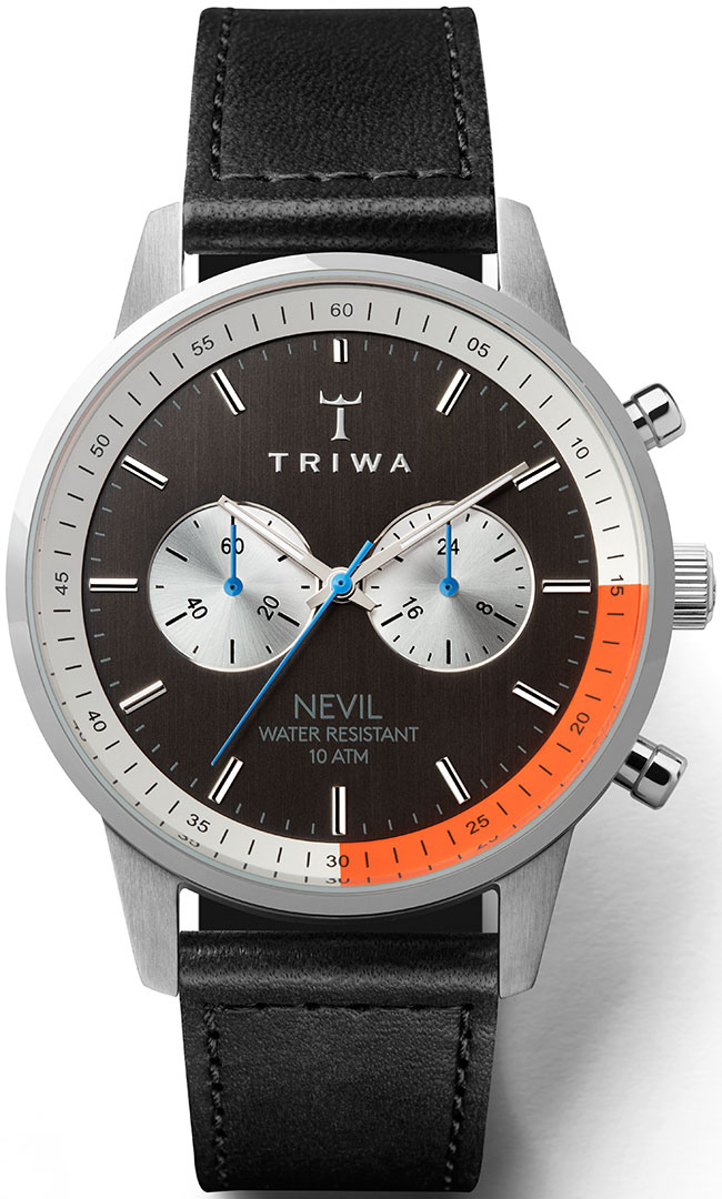 Triwa Strangelove Nevil NEST123-SC010112. Kellon runko on valmistettu ruostumattomasta teräksestä ja musta kellotaulu on kauniisti viimeisteltu. Kellon musta ranneke on aitoa nahkaa joka on valmistettu ja värjätty orgaanisesti Ruotsissa, Tärsnsjö Garverin nahkaamossa. Ominaisuuksina kellosta löytyy myös ajanotto 60 minuuttiin saakka sekä 24h näyttö. Kellon rungon leveys on 42mm ja paksuus 12mm. Rannekkeen leveys kiinnityskohdasta on 20mm. Triwa- kelloille myönnetään 2 vuoden takuu ja ne toimitetaan valmistajan alkuperäisessä rasiassa.