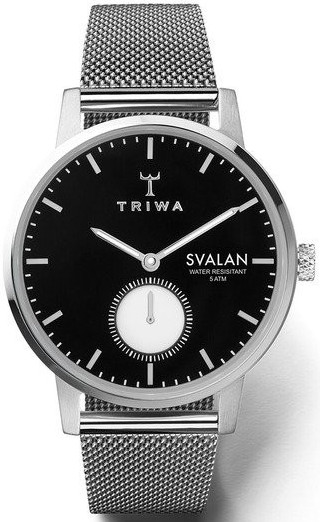 Triwa SVST103 Ebony Svalan Steel Mesh Super Slim -kellossa on musta kellotaulu ja teräksinen mesh-ranneke! Ominaisuutena kellosta löytyy erillinen sekuntiosoitin kello kuuden kohdalla. Kellon rungon leveys on 34mm ja paksuus 7.7mm. Rannekkeen leveys kiinnityskohdasta on 16mm. Triwa -kelloille myönnetään 2 vuoden takuu ja ne toimitetaan valmistajan alkuperäisessä rasiassa.