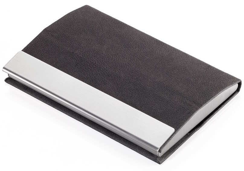 Troika Card Stand käyntikorttikotelo on edullinen mutta laadukas käyntikorttikotelo. Kotelo on valmistettu tekonahasta ja ruostumattomasta teräksestä. Kotelo muuntuu kätevästi käyntikorttikotelosta työpöytäsi käyntikorttitelineeksi.