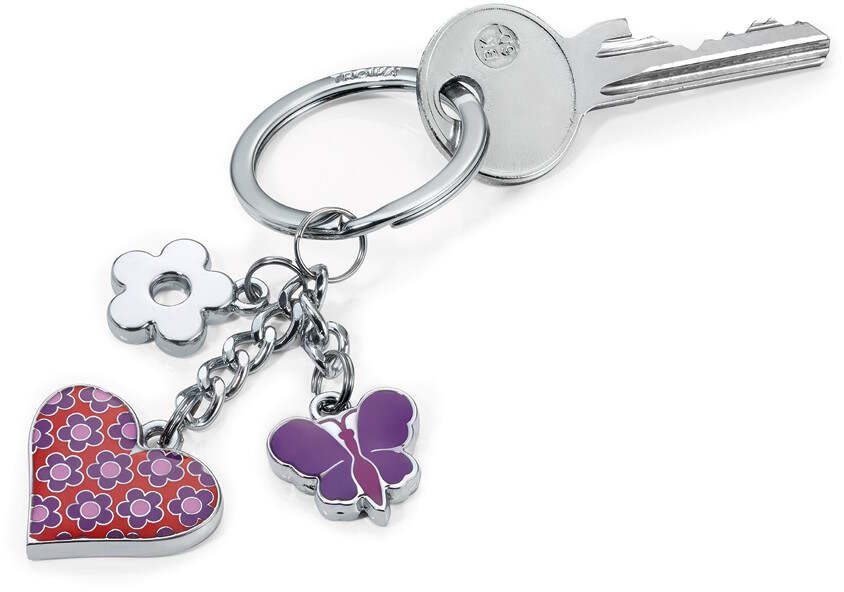 Troika sydän avaimenperä KR16-02/PU. Renkaasta roikkuvat sydän, kukka ja perhonen. Avaimenperän mitat ovat 35 x 4 x 90 mm ja sen paino on 31 grammaa. Tuote toimitetaan valmistajan alkuperäisessä rasiassa.