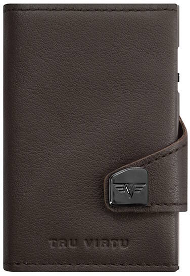 Tru Virtu Click & Slide Nappa Brown on tyylikäs korttikotelo, joka on valmistettu ruskeasta nappanahasta. Tru Virtu click & slide -lompakoissa käytetään innovatiivista ja patentoitua "Click & Slide" -teknologiaa. Peukalon työnnöllä korttisi pomppaavat ulos alumiinikotelosta porrastetusti ja saat kätevästi poimittua oikean kortin. Alumiinikotelo suojaa kortteja myös etäluennalta. Lompakko on kiedottu italialaiseen nahkaan, joka aukeaa napin avauksella seteli- ja korttitaskuksi, joten myös setelit ja kuitit kulkevat kätevästi mukana. Lompakon paksuus on 21mm ja korkeus 99mm. Alumiinikoteloon mahtuu 5 korttia ja avautuvaan nahkataskuun saat mahtumaan 4 korttia lisää.