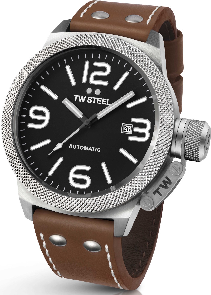 Miesten TW Steel automatic TWA955 rannekello. Rungon leveys on 50mm ja valmistettu ruostumattomasta teräksestä. Nahkarannekkeen leveys on 22mm. Runko on väriltään hopea/harmaa ja ranneke ruskea. Kellossa on myös päivyri. TW Steel kelloille myönnetään 2 vuoden takuu ja ne toimitetaan valmistajan alkuperäisessä rasiassa.