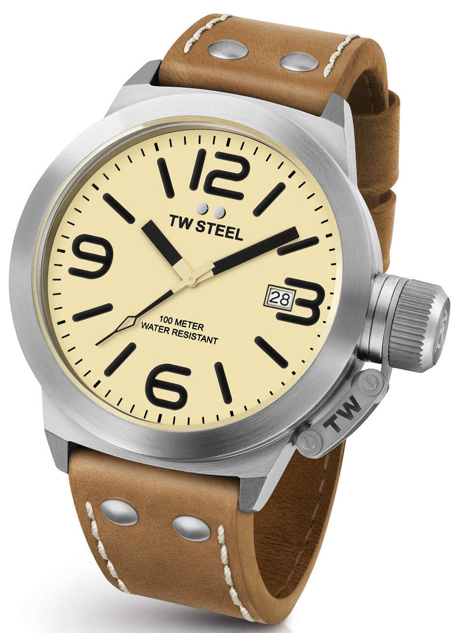 TW Steel Canteen Leather CS11 on TW steel malliston perusmalli luonnonvalkoisella kellotaululla. Kellon rungon leveys on 45mm, paksuus 15mm ja rannekkeen leveys 24mm. TW Steel kelloille myönnetään 2 vuoden takuu ja ne toimitetaan valmistajan alkuperäisessä rasiassa!