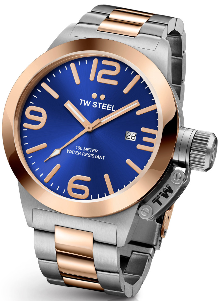 TW Steel CB141 Canteen Bracelet kellossa on sininen kellotaulu ja kaksivärinen ranneke. Kellon rungon leveys on 45mm, paksuus 15mm ja rannekkeen leveys 24mm. TW Steel kelloille myönnetään 2 vuoden takuu ja ne toimitetaan valmistajan alkuperäisessä rasiassa!