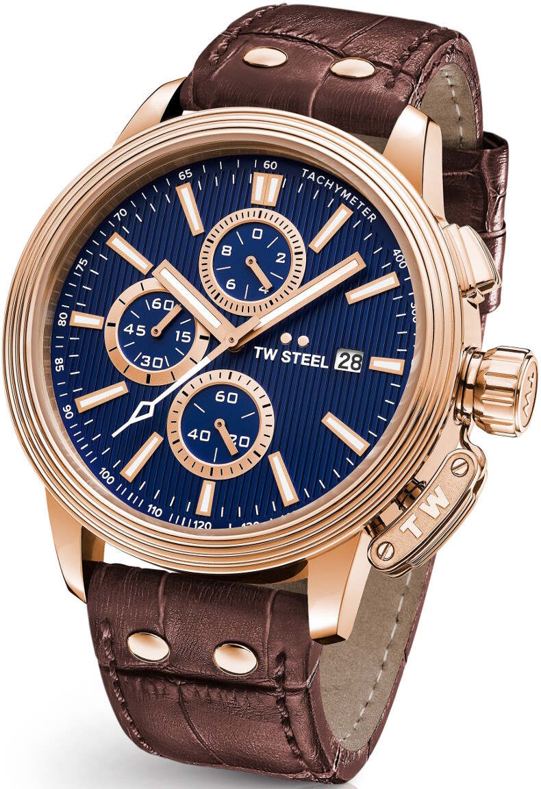 TW Steel CE7018 CEO Adesso 48mm on todella näyttävä ja elegantti miesten kello. Kellossa on ruskea linkkulukollinen nahkaranneke, sininen kellotaulu ja punakullan värinen runko. Koneistona Miyota 6S10, jossa ominaisuuksina ajanotto sekä päivyri. Kellon rungon leveys on 48mm, paksuus 14mm ja rannekkeen leveys 24mm. TW Steel kelloille myönnetään 2 vuoden takuu ja ne toimitetaan valmistajan alkuperäisessä rasiassa!
