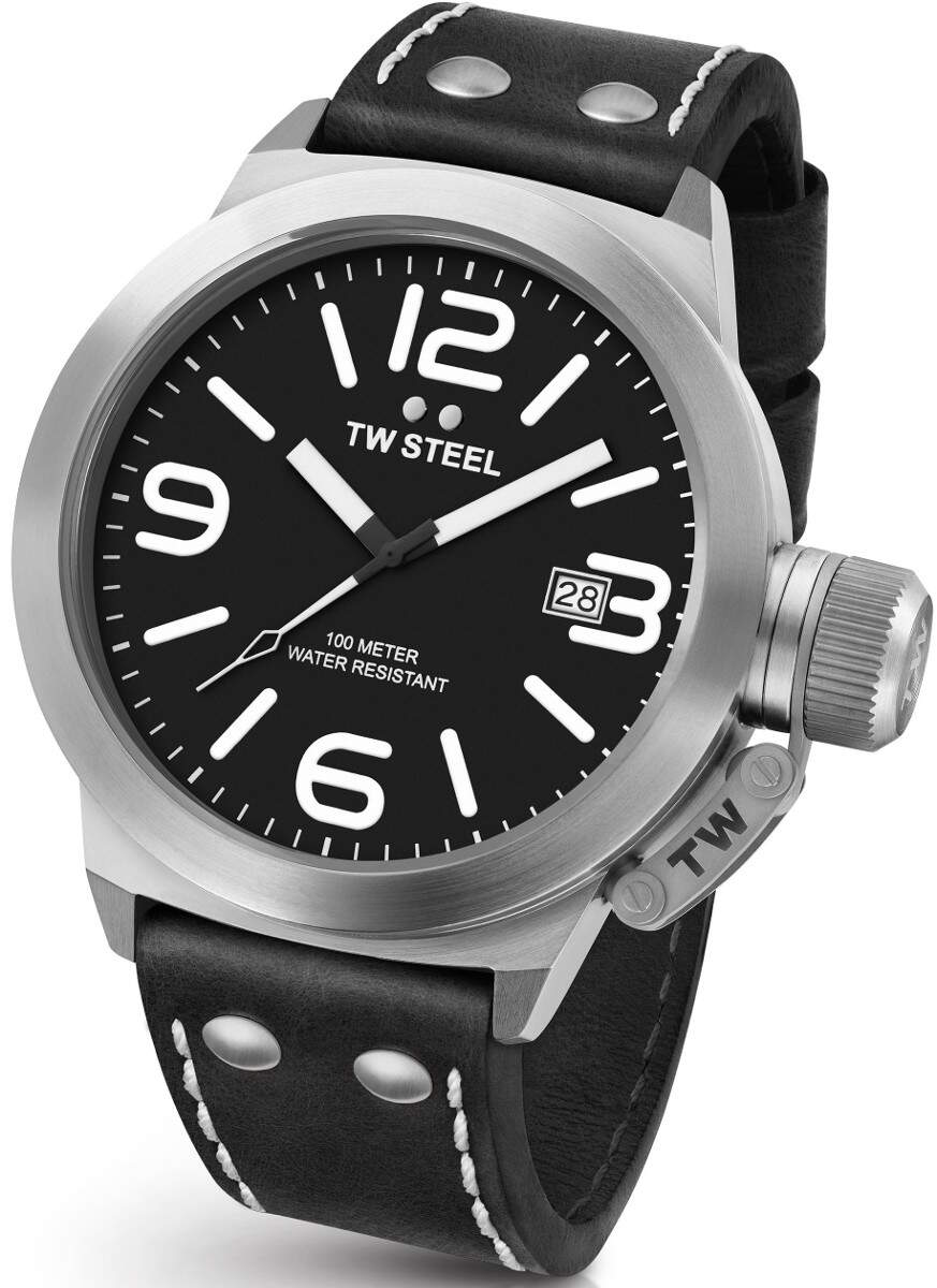 TW Steel CS2 Canteen Leather kellossa on suuri ja selkeä musta kellotaulu. Kellon rungon leveys on 50mm, paksuus 15mm ja rannekkeen leveys kiinnityskohdasta 24mm. TW Steel kelloille myönnetään 2 vuoden takuu ja ne toimitetaan valmistajan alkuperäisessä rasiassa!