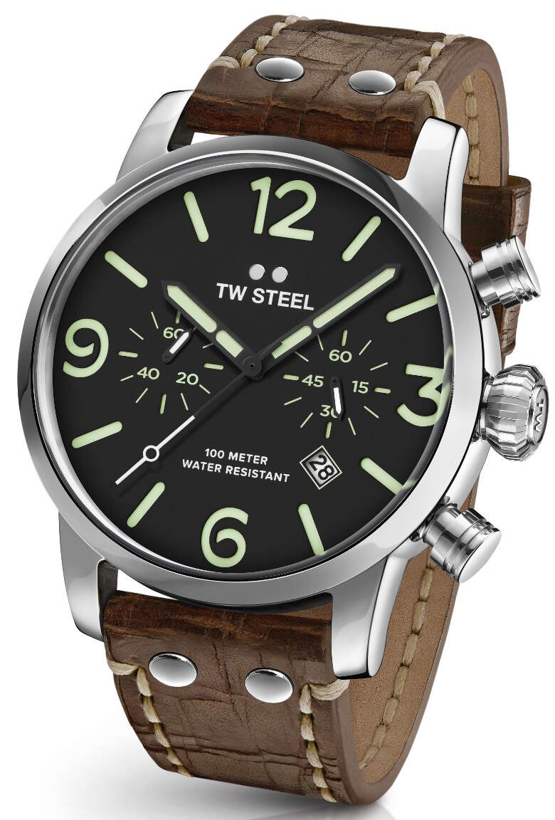TW Steel MS14 Maverick Chronograph kellossa on musta kellotaulu ja luminoituvat vihreät indeksit. Ominaisuuksina ajanotto sekä päivyri. Kellon rungon leveys on 48mm, paksuus 15mm ja rannekkeen leveys 24mm. Ranneke on ruskeaa Vintage nahkaa ja se kuluu ja patinoituu ajan kanssa. TW Steel kelloille myönnetään 2 vuoden takuu ja ne toimitetaan valmistajan alkuperäisessä rasiassa!