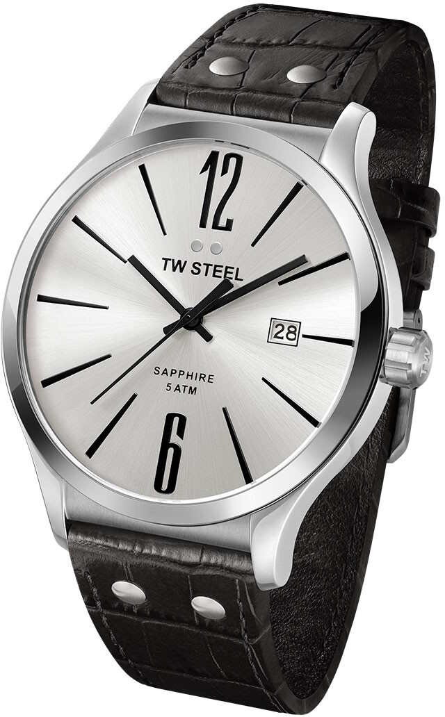 Miesten tyylikäs TW Steel Slim LineTW1301 rannekello. Kellon hopean värisen rungon leveys on 45mm ja se on valmistettu ruostumattomasta teräksestä. Mustan nahkarannekkeen leveys on 20mm. Kellossa on myös päivyri ja safiirilasi. TW Steel kelloille myönnetään 2 vuoden takuu ja ne toimitetaan valmistajan alkuperäisessä rasiassa.