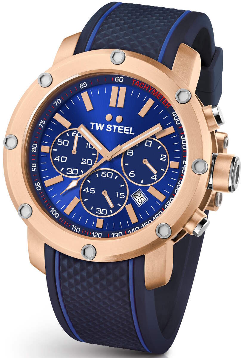 TW Steel TS3 Grandeur Tech on suurikokoinen ja näyttävä chronograph kello sinisellä kellotaululla. Kellon rungon leveys on 48mm, paksuus 15mm ja rannekkeen leveys kiinnityskohdasta 24mm. TW Steel kelloille myönnetään 2 vuoden takuu ja ne toimitetaan valmistajan alkuperäisessä rasiassa!