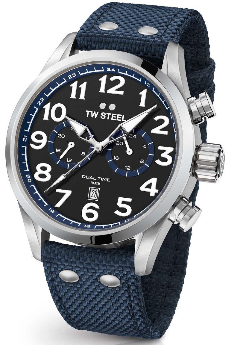 Kangasrannekkeisten TW Steel Volante sarjan kellojen tyylissä on säväys autourheilu maailmaa. TW Steel VS38 Volante GMT -kellossa on sininen kangasranneke, hopeanvärinen runko ja musta kellotaulu isoilla indekseillä. Koneistona japanilainen VD31, jossa ominaisuuksina päivyri, 24h näyttö sekä kaksoisaika. Kellon rungon leveys on 48mm ja paksuus 15,5mm. Rannekkeen leveys kiinnityskohdasta on 24mm. TW Steel kelloille myönnetään 2 vuoden takuu ja ne toimitetaan valmistajan alkuperäisessä rasiassa! HUOM! Kellon mukana ei toimiteta alkuperäistä rasiaa (Huomioitu hinnassa).