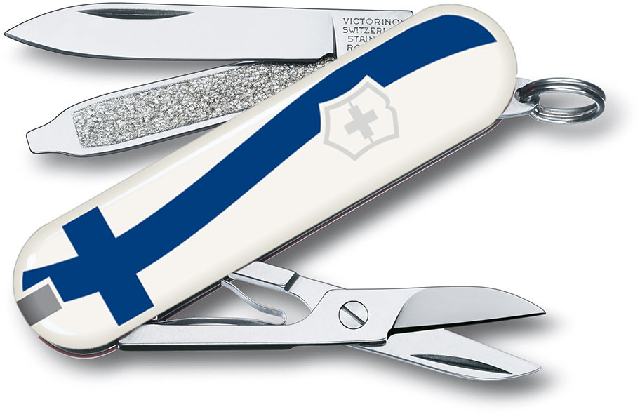 Victorinox 0.6223.7R2 Classic SD Jubileum Edition on pieni ja kätevä linkkari. Tämän suomen lipun väreillä koristeltu linkkuveitsi on valmistettu Suomi 100 vuotta juhlavuoden kunniaksi.