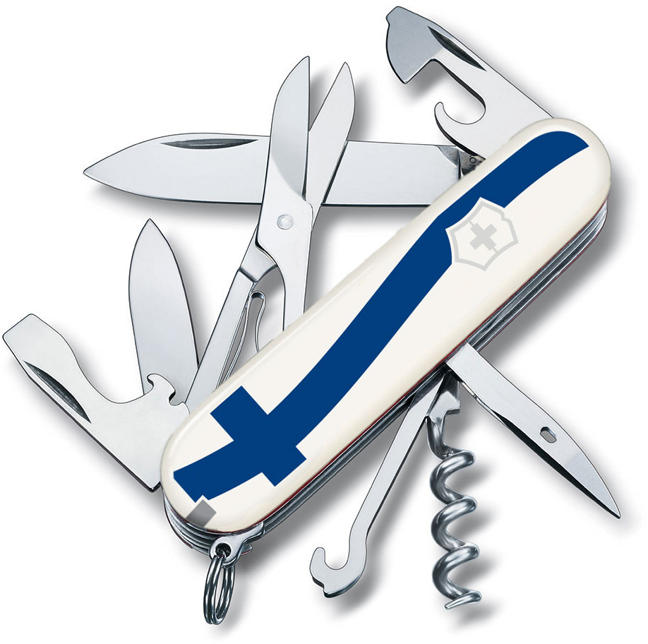 Victorinox 1.3703.7R2 Climber Jubileum Edition on kestävä ja monipuolinen linkkuveitsi. Tämän Suomen lipun väreillä koristeltu linkkuveitsi on valmistettu Suomi 100-vuotta juhlavuoden kunniaksi. Linkkuveitsen pituus kasattuna on 92 mm, ja pisimmän terän pituus on 68 mm.