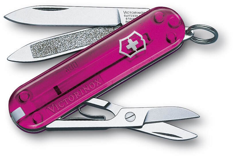 Victorinox Classic pink transparent 0.6203.T5 on kaunis pinkki linkkari, joka kulkee helposti mukana esimerkiksi avainnipussa. Linkkarin pituus 58mm.