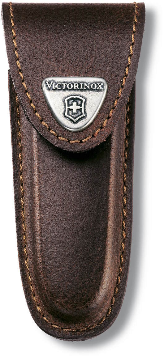 Victorinox nahkakotelo ruskea 4.0533 2-4krs. 91mm. Kotelo on valmistettu laadukkaasta nahasta. Siihen sopiva Victorinoxin ns. standardimittaiset (91mm) linkkuveitset, joissa on 2-4 työkalukerrosta.
