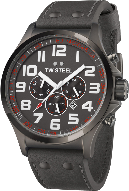 Miesten tyylikäs TW Steel Pilot TW423 kronografi harmaalla nahkarannekkeella ja kellotaululla. Rannekellossa on päivyri ja ajanotto-ominaisuus. Kellon rungon leveys on 48mm, paksuus 13mm ja rannekkeen leveys 24mm. TW Steel kelloille myönnetään 2 vuoden takuu ja ne toimitetaan valmistajan alkuperäisessä rasiassa postikuluitta!