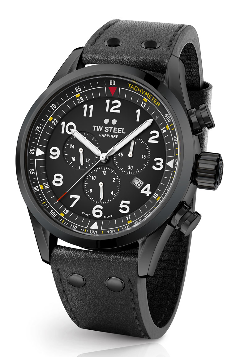 TW Steel Swiss Volante SVS205 on tyylikäs miesten kello, jonka ruostumattomasta teräksestä valmistettu 48 mm leveä runko on musta. Rannekkeena tässä mallissa on musta nahkaranneke. Kellon ominaisuuksiin kuuluu ajanotto ja päivyri. TW Steel SVS205 -kellon mustaa kellotaulua suojaa safiirilasi. Kello kuuluu vesitiiviysluokkaan 100m / 10atm eli se on vesitiivis. Soveltuu pintauintikäyttöön ja snorkkelisukellukseen, ei laitesukellukseen. Tälle TW Steel Volante-kellolle myönnetään 3 vuoden takuu ja se toimitetaan valmistajan alkuperäisessä rasiassa.