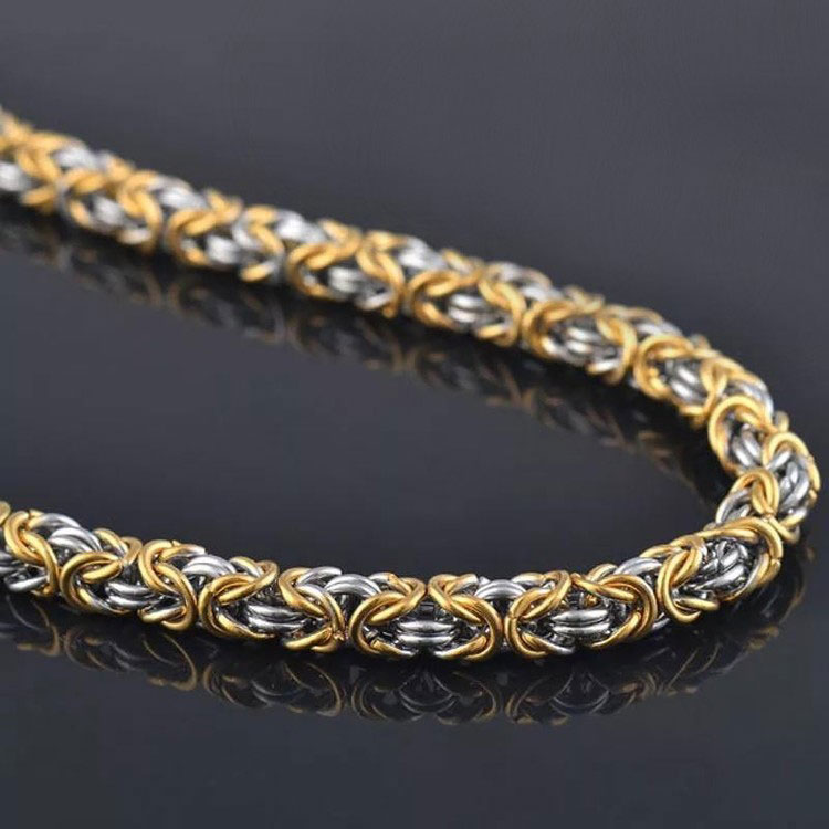 Varia Design Golden Kungslänk -kaulakoru on valmistettu hopean- ja kullanvärisestä ruostumattomasta teräksestä. Kaulaketjun pituus on 60 cm ja paksuus 7 mm. Koru painaa noin 90 grammaa. Varia Design -korut toimitetaan valmistajan alkuperäisessä pakkauksessa.