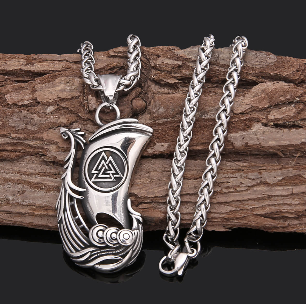 Varia Design Valknut Boat-kaulakorussa on kaunis viikinkivene, jolla on tyylitelty pitkä kaula, joka nousee komeasti tuulta vasten. Purjetta koristaa Valknut-symboli. Riipus yhdistettynä punottuun ketjuun luo näyttävän kokonaisuuden. Ketjun pituus on 60 cm, riipus 40 x 24 mm. Varia Design korut toimitetaan valmistajan alkuperäisessä rasiassa.