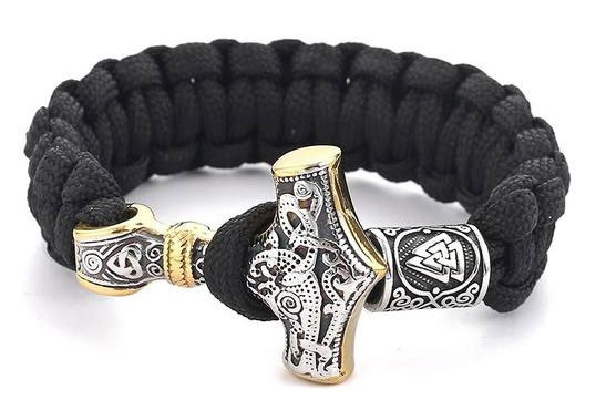Varia Design Viking Thorin vasara -rannekoru musta/hopea-kulta