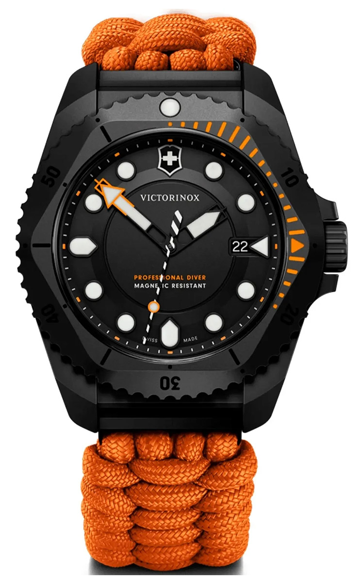 Victorinox Dive Pro Quartz 242069.1 on kello sinulle, joka vaadit äärimmäistä tarkkuutta ja tinkimätöntä kestävyyttä. Tämä ISO 6425 -sertifioitu ammattilaistason sukeltajankello yhdistää hiekkapuhalletun mustan titaanirungon ja huomiota herättävän oranssin paracord-rannekkeen. Se on tekninen mestariteos, joka on suunniteltu hallitsemaan vedenalaista maailmaa ja kestämään valtavaa painetta.