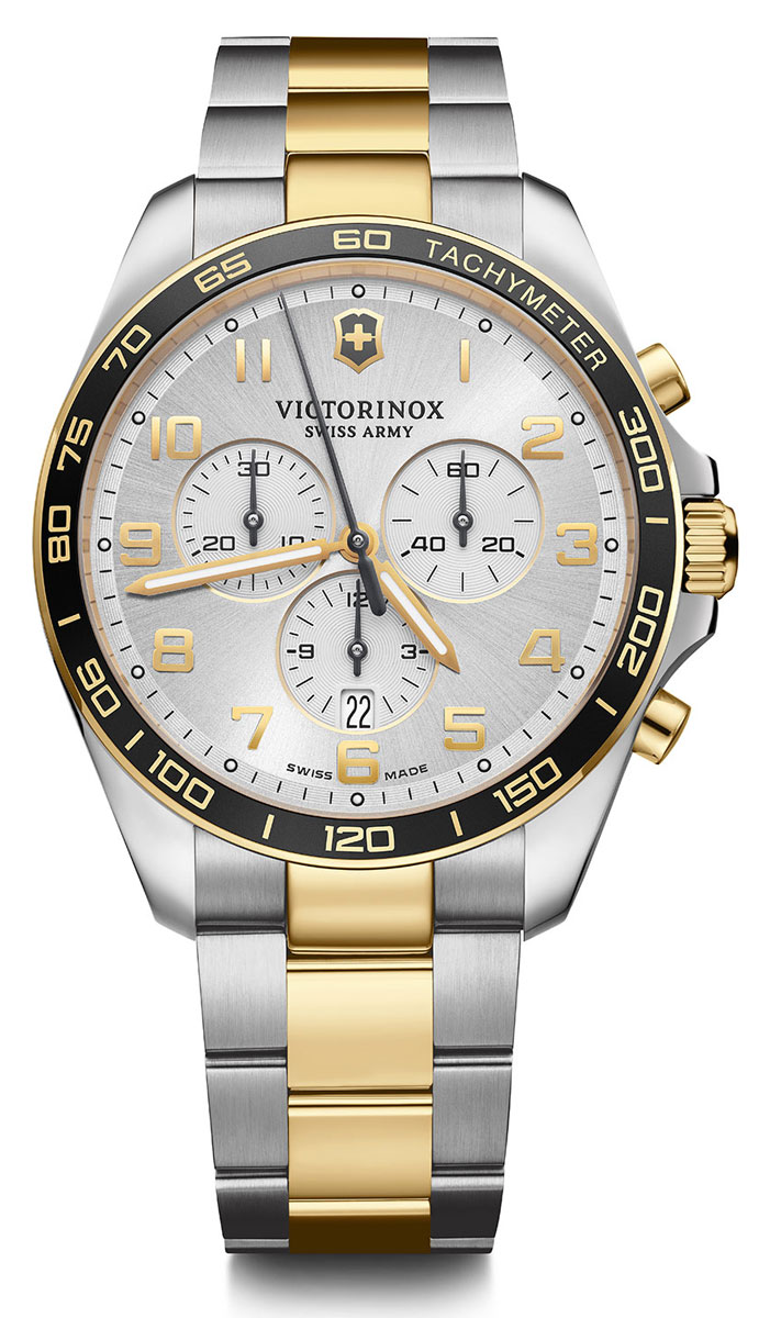 Victorinox FieldForce Classic Chronograph 241903 on tyylikäs miesten rannekello, jonka 42 mm leveä ja 11 mm paksu hopeanvärinen runko on valmistettu ruostumattomasta teräksestä. Runkoon kiinnittyy kaksivärinen ruostumaton teräsranneke, jonka leveys kiinnityskohdasta on 21 mm. Safiirilasin alla suojassa on harmaa kellotaulu, jossa ajanotto-ominaisuudet ja päivyri. Victorinox 241903 kuuluu vesitiiviysluokkaan 100m / 10atm eli se on vesitiivis. Soveltuu pintauintikäyttöön ja snorkkelisukellukseen, ei laitesukellukseen. Victorinox-kelloille myönnetään viiden vuoden takuu ja ne toimitetaan valmistajan alkuperäisessä pakkauksessa.