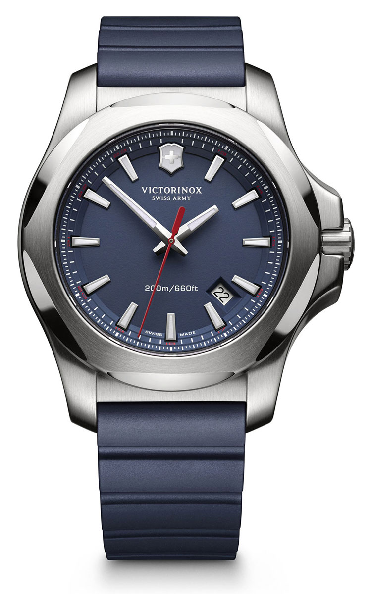 Victorinox I.N.O.X. 241688 on tyylikäs miesten rannekello, jonka 43 mm leveä ja 14 mm paksu hopeanvärinen runko on valmistettu ruostumattomasta teräksestä. Runkoon kiinnittyy sininen silikoniranneke, jonka leveys kiinnityskohdasta on 21 mm. Safiirilasin alla suojassa on sininen kellotaulu, jossa päivyri. Victorinox 241688 kuuluu vesitiiviysluokkaan 200m / 20atm eli se soveltuu laitesukellukseen. Victorinox-kelloille myönnetään viiden vuoden takuu ja ne toimitetaan valmistajan alkuperäisessä pakkauksessa.
