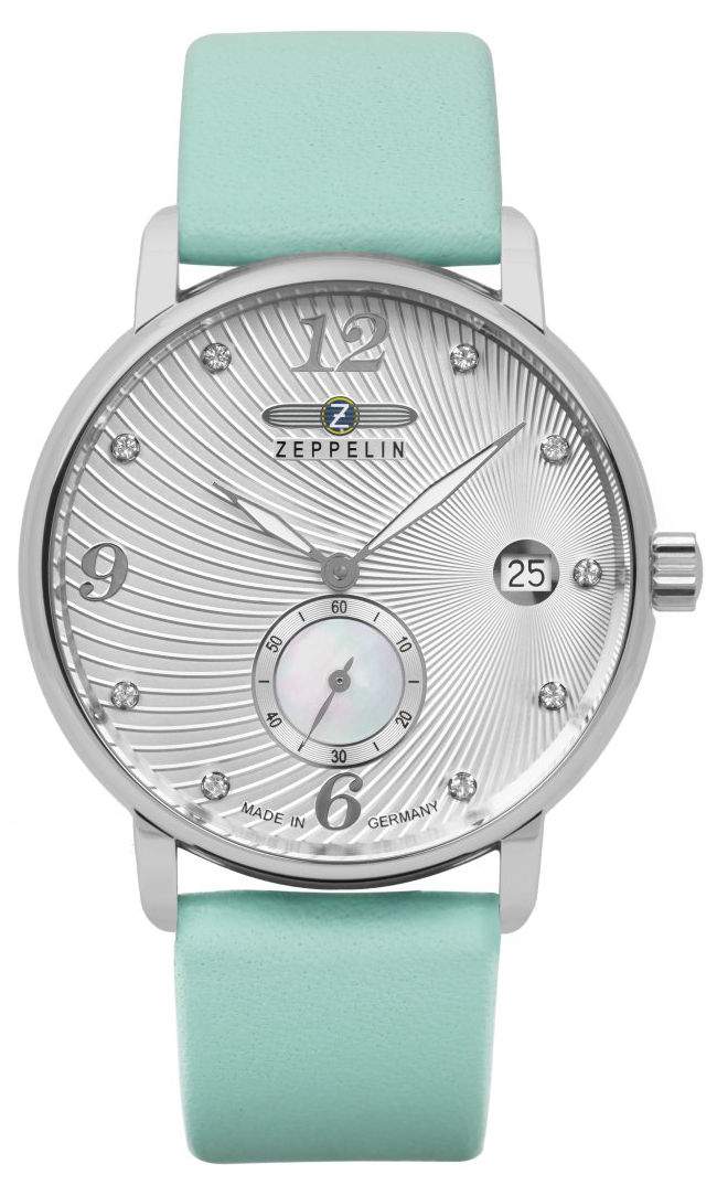 Zeppelin Luna Lady 8631-4 -naisten rannekello ihastuttaa herkällä muodollaan. Taulun kaunis guilloche-kaiverrus yhdistettynä timanttileikattuihin indekseihin luo ainutlaatuisen korumaisen kokonaisuuden, joka on helppo pukea sekä arkeen että juhlaan. Kello onkin täydellinen hänelle, joka etsii korumaista kelloa taidokkaalla muotoilulla. Zeppelin Luna Lady 8631-4 on varustettu sveitsiläisellä 6004.D -kvartsikoneistolla, ja saksalaisvalmisteisilla Zeppelin-rannekelloilla on 2 vuoden takuu.